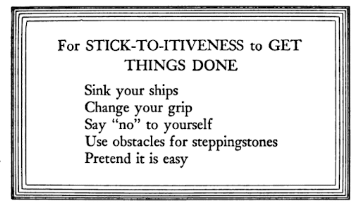 Many people help their stick-to-itiveness by, figuratively, sinking their ships. They deliberately make it impossible for themselves to quit.